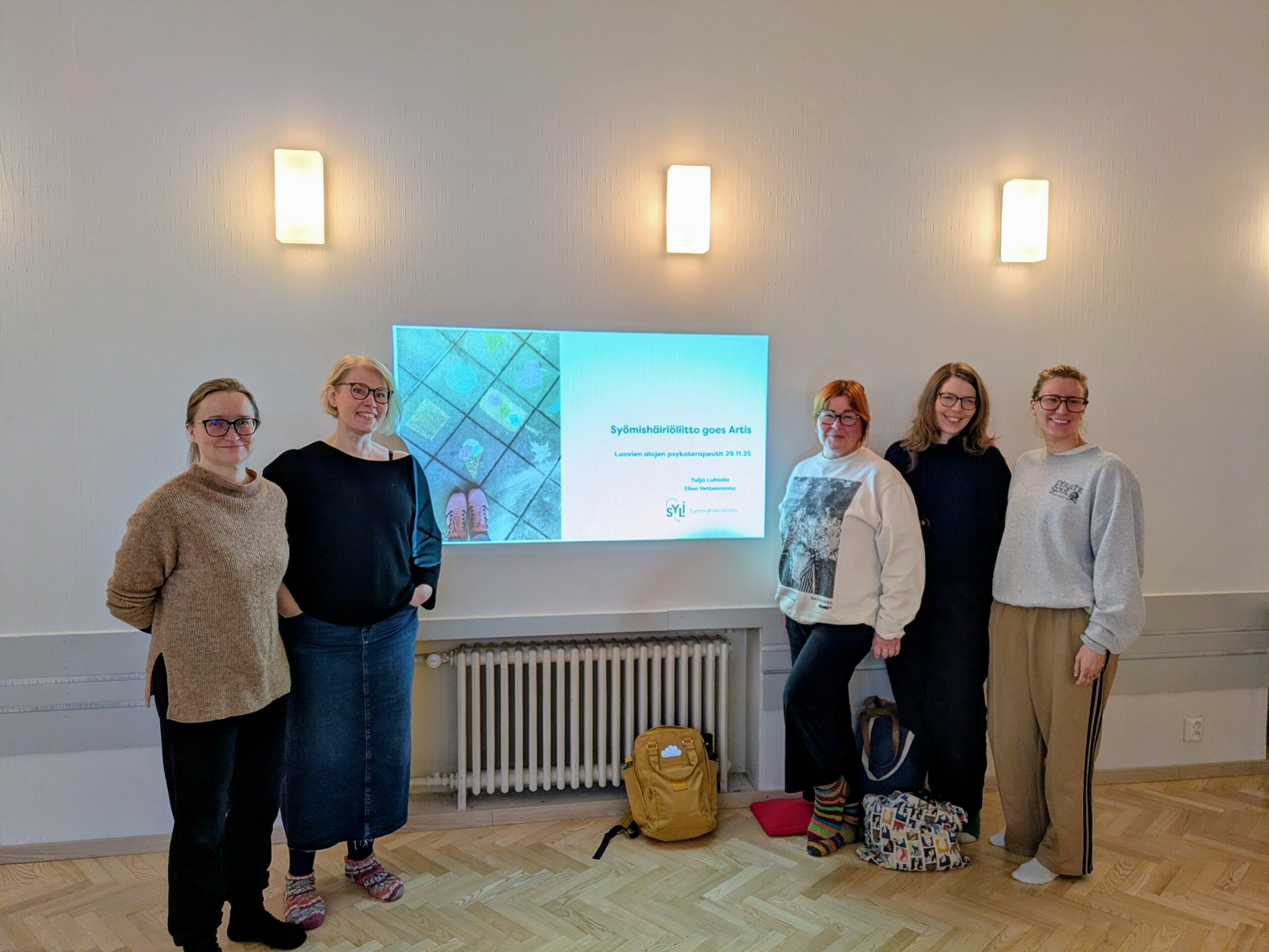 Kouluttamassa on innostava yhdistelmä syömishäiriöiden ammattilaisia ja taideterapeutteja.